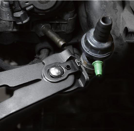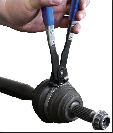 Klemmetang for montering av "øreslangeklemmer". Klemmer like hardt på begge sider. For montering av klemmer på f.eks. navstøvler, radiatorslanger og drivstoffledninger. Passer blant annet til VAG, Opel, BMW, MB, Honda, Nissan og Mazda.