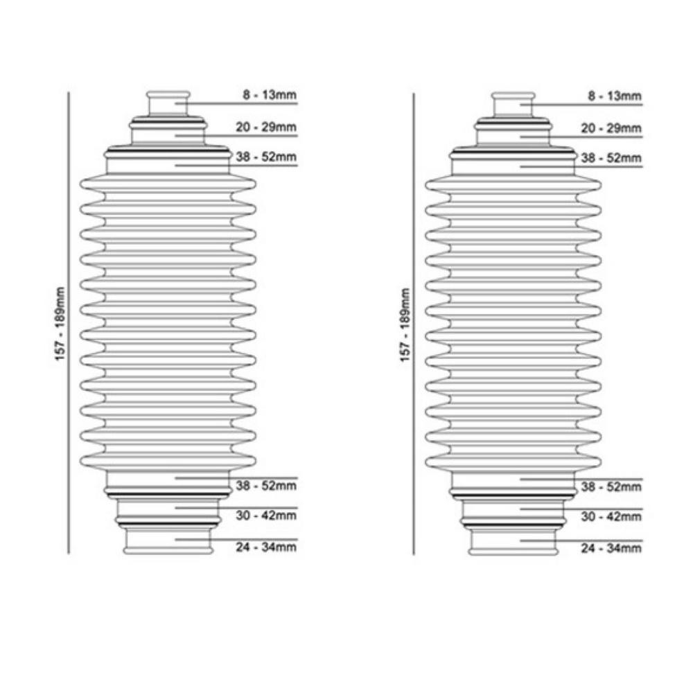 Designet som en direkte erstatning for OE-applikasjoner som gir overlegen fleksibilitet som minimaliserer slitasje. Ved å bruke den spesialdesignede monteringskjeglen, inkludert i settet, kan Duraboot® Stretchy Direct Replacement Steering Rack Boot monteres uten behov for å fjerne kuleleddet, dette eliminerer behovet for å justere kjøretøyet på nytt etter monteringen, noe som sparer både tid og penger.