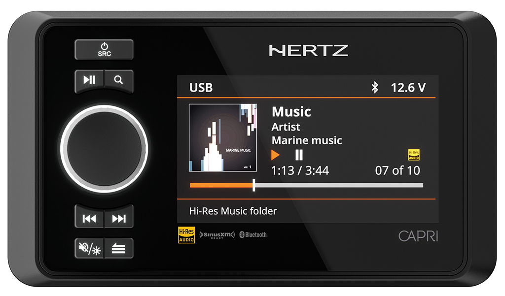 Vi presenterer «Capri», selve symbolet på eleganse og raffinement i avanserte lydkilder. Capri Hi-End lydkilde er inspirert av den fantastiske skjønnheten og luksuriøse atmosfæren på øya med samme navn, og er et ekte mesterverk som overgår vanlige lydopplevelser. Med omhyggelig oppmerksomhet på detaljer og kompromissløst håndverk, representerer Capri H100 fra Hertz toppen av lydteknikk. Denne førsteklasses lydkilden er konstruert for å levere overlegen lydkvalitet og tåle det tøffe maritime miljøet, og er designet for å heve båtopplevelsen til nye høyder. Med fokus på høyoppløselig lyd sørger CAPRI for at hver eneste tone, hver detalj og hver nyanse i favorittmusikken din gjengis med fantastisk klarhet og kvalitet, slik at du kan fordype deg i en ekte audiofil opplevelse på vannet.