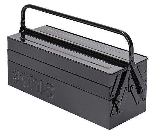 Sonisk verktøykasse av tradisjonell modell med 5 rom. Lakkert i ripebestandig svart pulverlakk