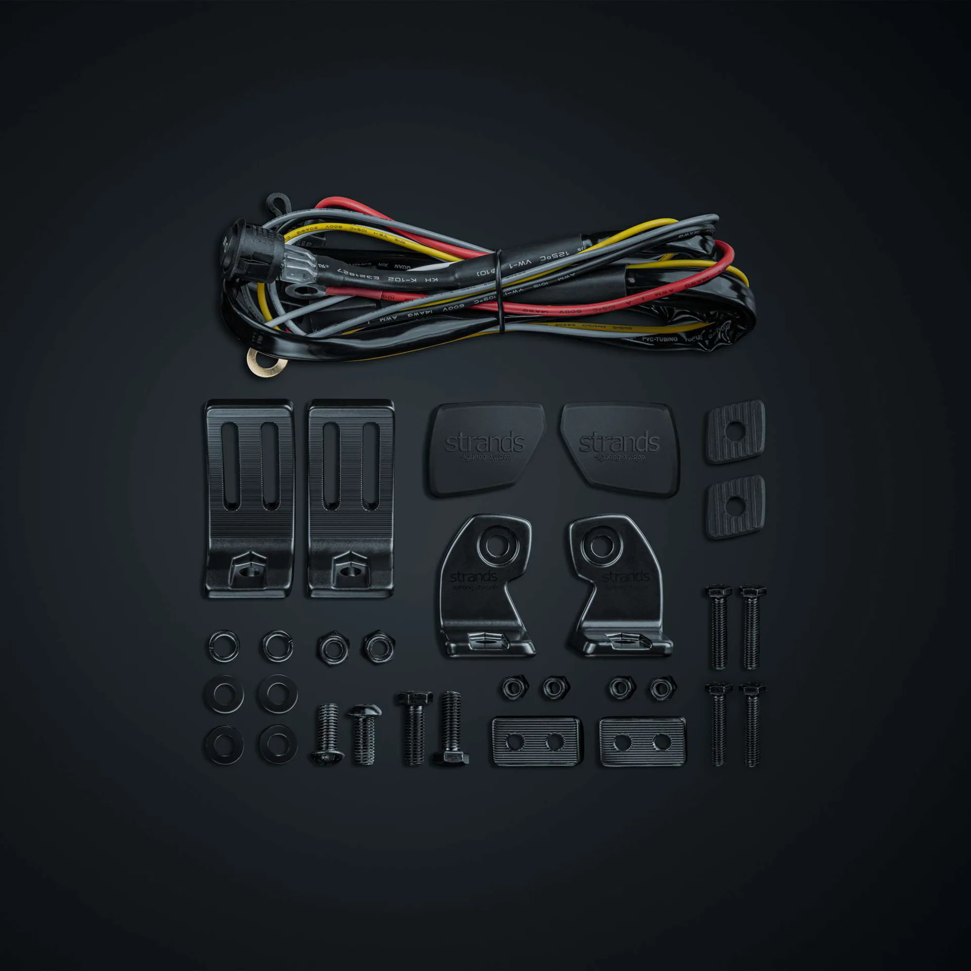 Skylord har et innebygd relé og kobles til med en 2,5 m kabel, og leveres med installasjonstilbehør: side- og opphengsbeslag, skiver, bolter, gummipute, gummideksel med Strand-logoen, kabelsett for XBB med knapp for posisjonslys og SuperSeal-kontakt. Du kan trenge et CANbus-grensesnitt, f.eks. XBB, for å fullføre installasjonen.