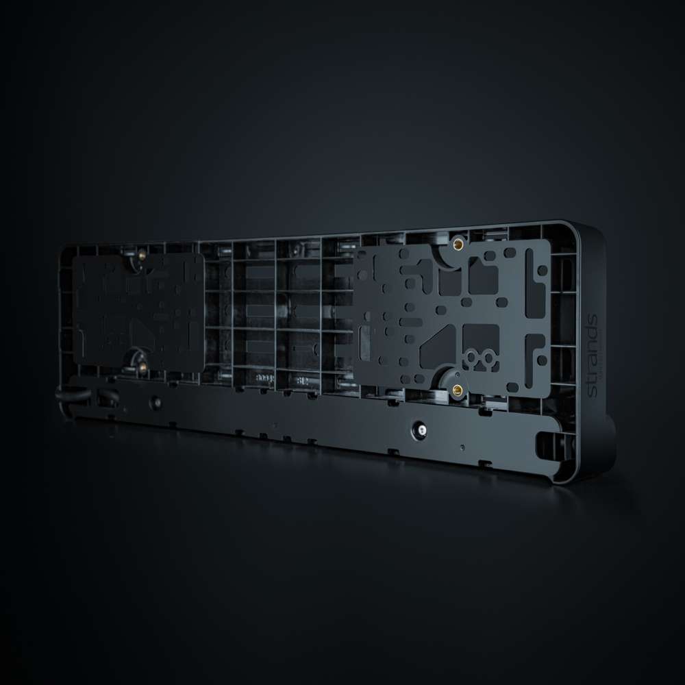 Denne versjonen av NUUK D-Line leveres komplett med skilt-ramme, innebygd relé, DT4-kontakt og alt du trenger til installasjonen.